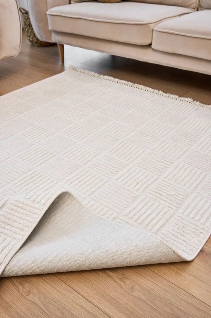 FIRSAT ÖLÇÜ Hav Toz Vermeyen Modern Dayanıklı Beyaz Halı