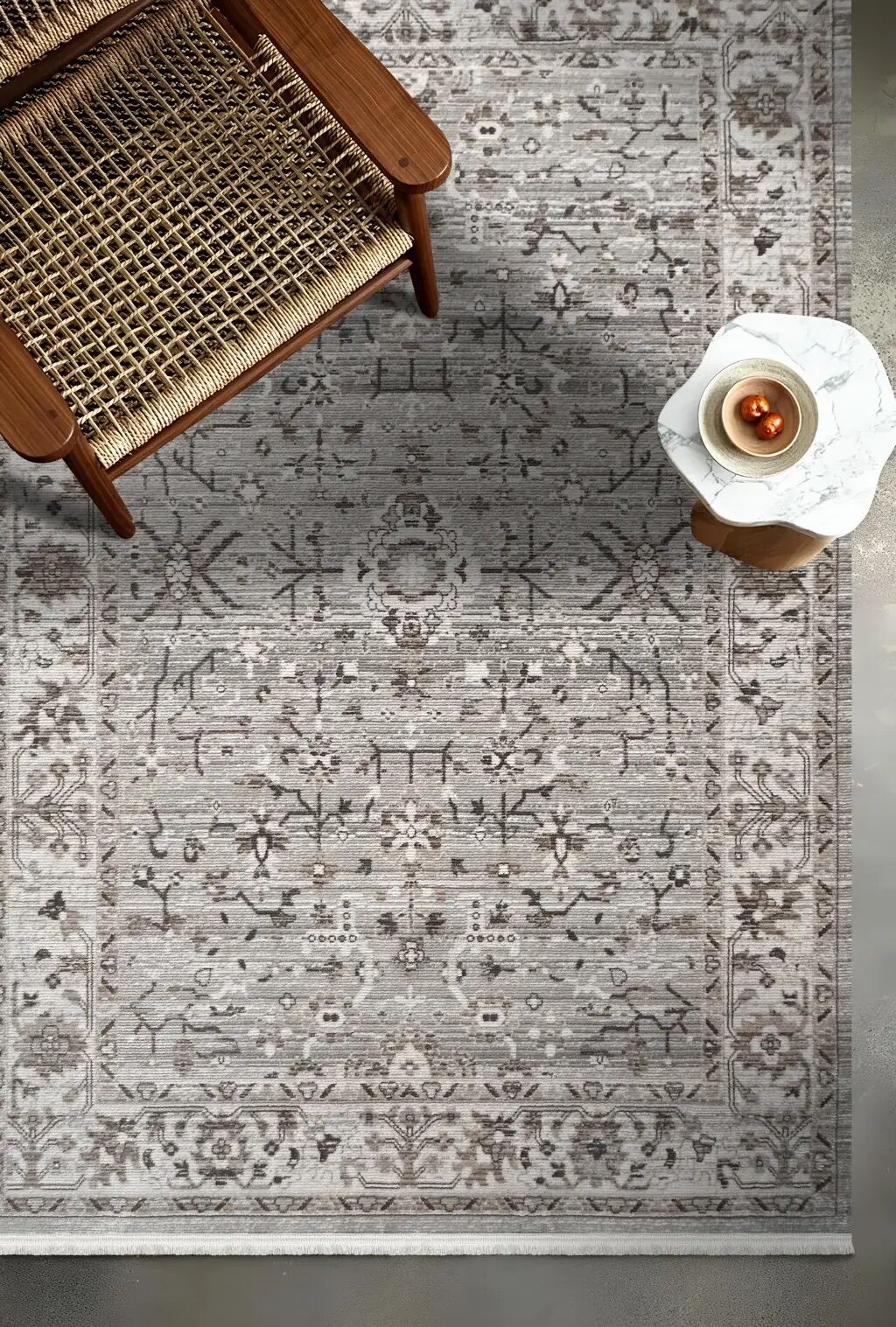 Luna Serisi Bej/Gri Vintage Makine Dokuma Halısı EH-4055