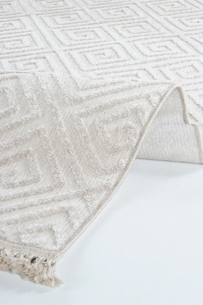 Madra Serisi Hav Toz Vermeyen Modern Dayanıklı Krem/Bej Halı AP-6812