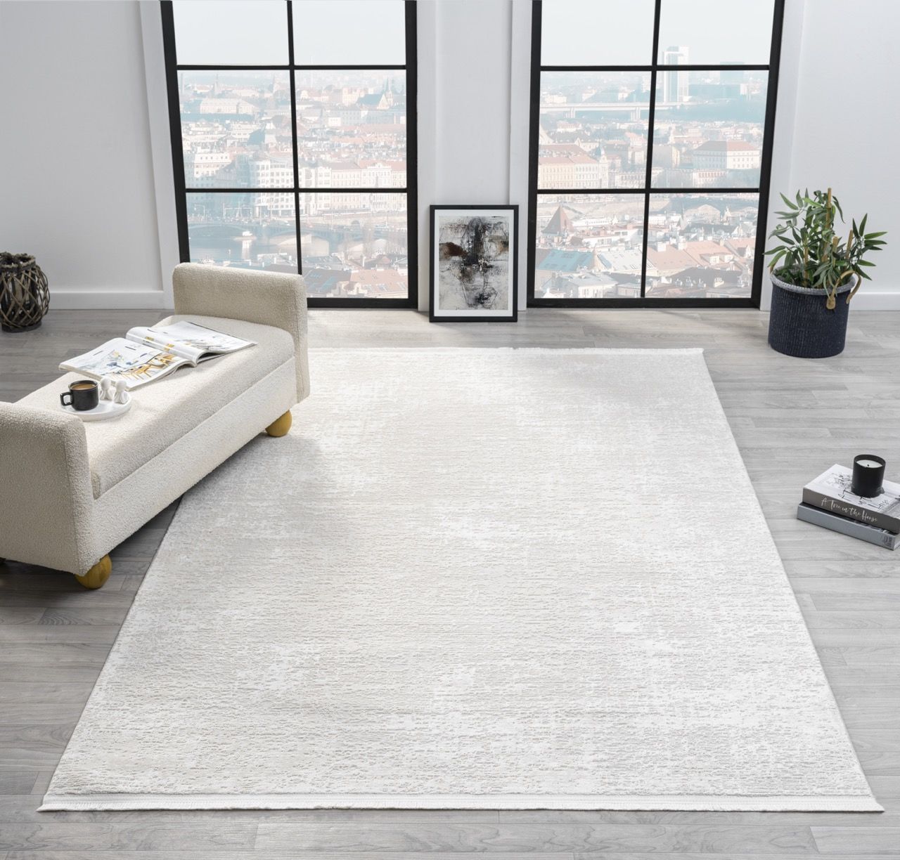 Verona Serisi Krem Renk Akrilik Makine Halısı SH-6001K